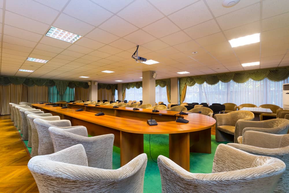 Помещение зала очень хорошо оснащено технически, в нем установлена очень удобная мебель. Всё это дает возможность детально рассматривать важные вопросы в очень комфортных условиях.